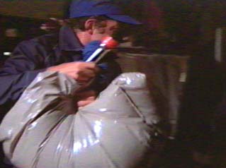 Als Wade Fowler sein Kostüm für den Überfall stiehlt, packt er die Sachen in einen dunklen Müllsack. Doch als er geht, ist der Müllsack plötzlich hellgrau. Drummond Cargill entdeckte diesen Fehler.