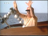 Über die entsetzliche Bluescreen-Aufnahme in der Szene, in der Dr. Flemming das vermeintliche Diebesgut über Bord wirft, habe ich mich ja bereits an anderer Stelle geäußert. Fürs Nitpicking relevant sind für mich in diesem Zusammenhang zwei Dinge; beide betreffen den Seegang. Gemäß dem Hintergrund ist das Wasser relativ ruhig. Dennoch schaukelt das Boot ganz schön hin und her. Davon lässt sich aber Dr. Flemming kein bisschen beeindrucken. Ohne selbst auch nur ein wenig hin und her zu schwanken, geht er seinen Beschäftigungen nach.